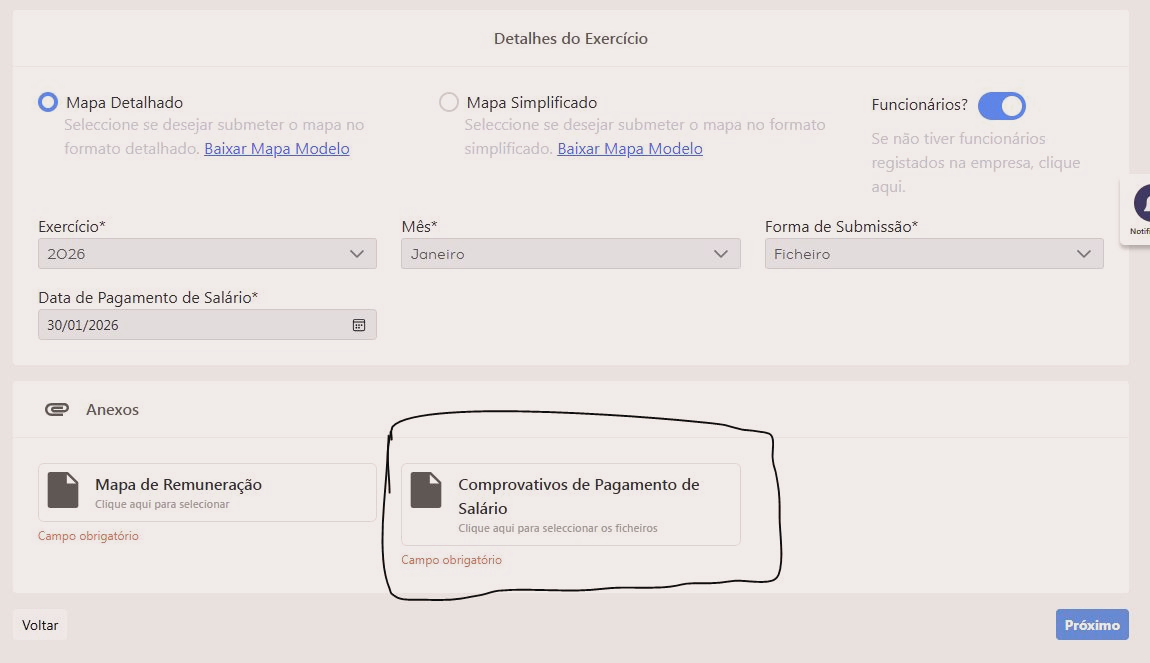 Esse comprovativo pode ser descarregado e anexado no Portal do Contribuinte como prova do pagamento dos salários.