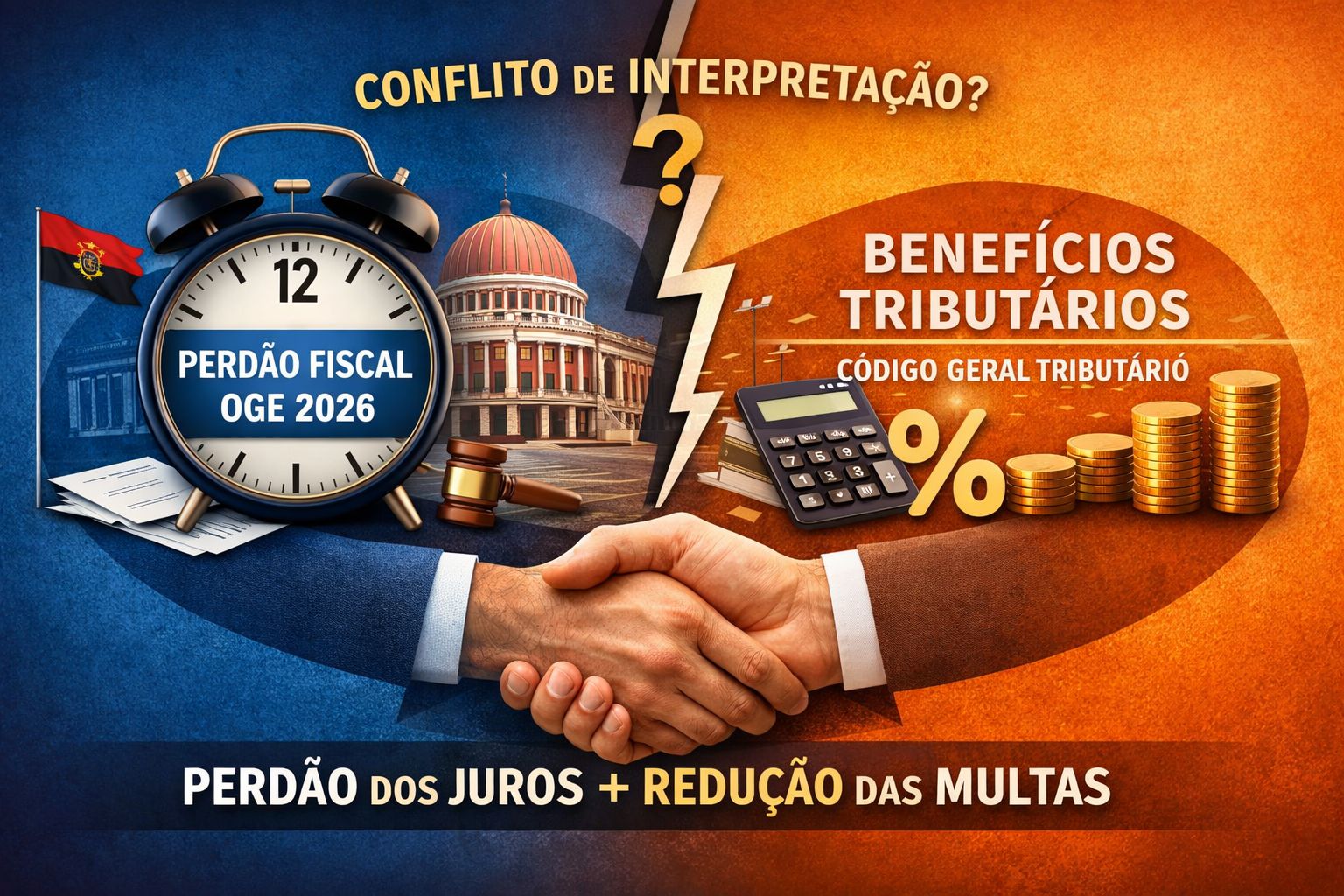 À luz da lei, da hierarquia normativa e da boa interpretação jurídica, o contribuinte em 2026 tem direito a beneficiar do perdão total dos juros de mora (OGE 2026, art. 33) e, simultaneamente, da redução das multas até 50% prevista no Código Geral Tributário.